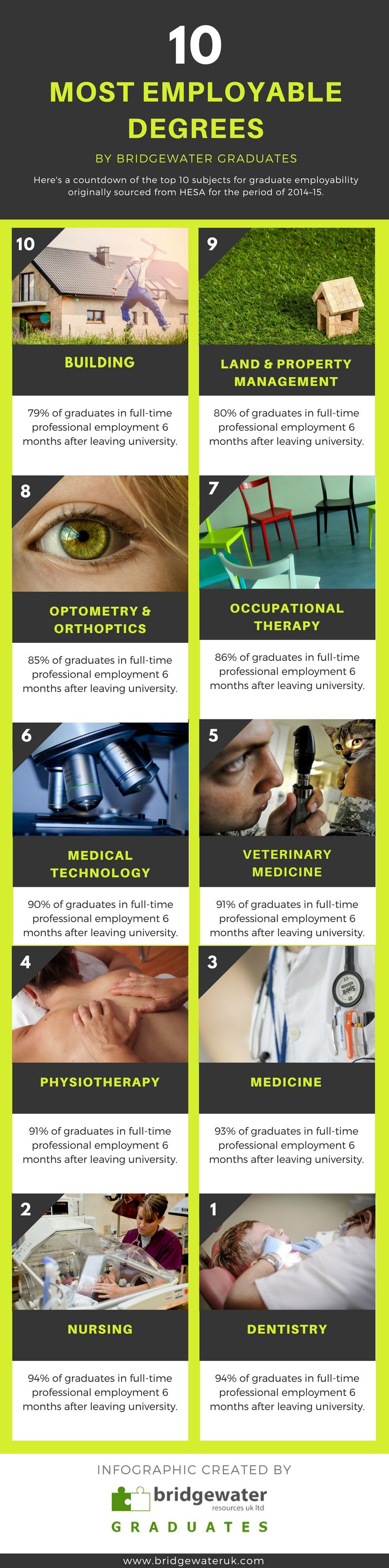 Many well-thought of degrees haven’t made the top 10 when it comes to employability. Where are the engineers, sciences and mathematicians? However, one thing to note is that all the subjects that did make our list point to quite specific career paths and many of those career paths are in high demand. The majority of graduates completing these degrees are also likely to have undertaken work experience as part of their course which puts them in good stead for securing a role following graduation.
